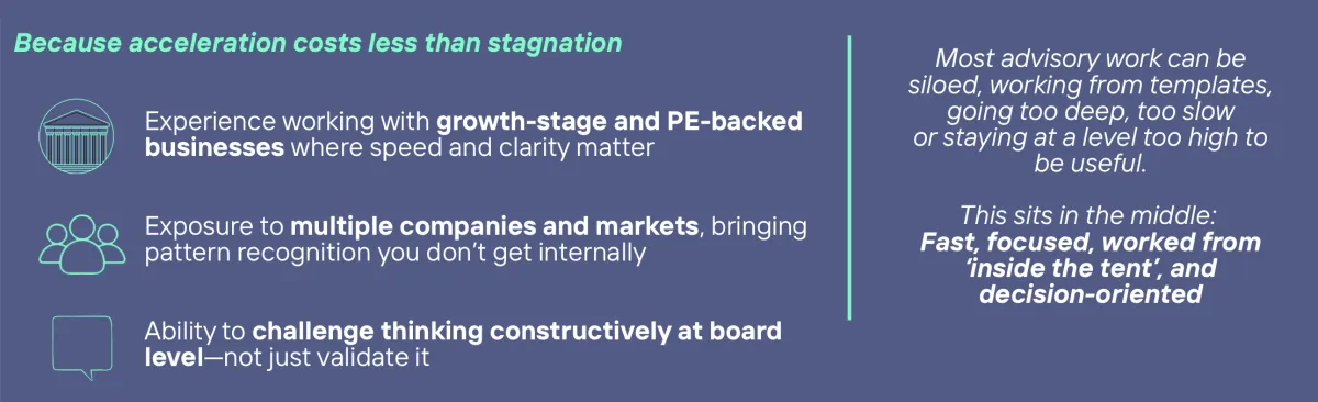 Board-level decision-makers needing sharp, external perspective, fast