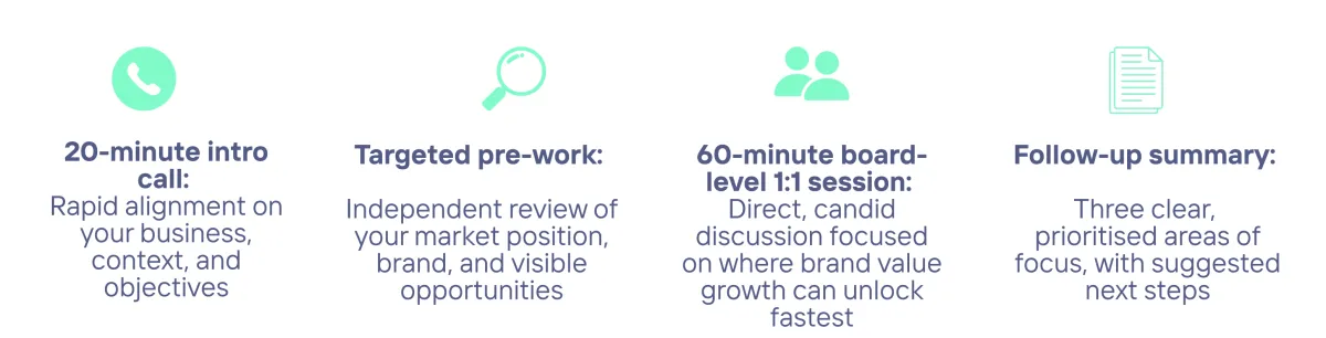 In a single, focused session, we identify where your brand value growth opportunities sit, so you can start making aligned decisions straight-away.